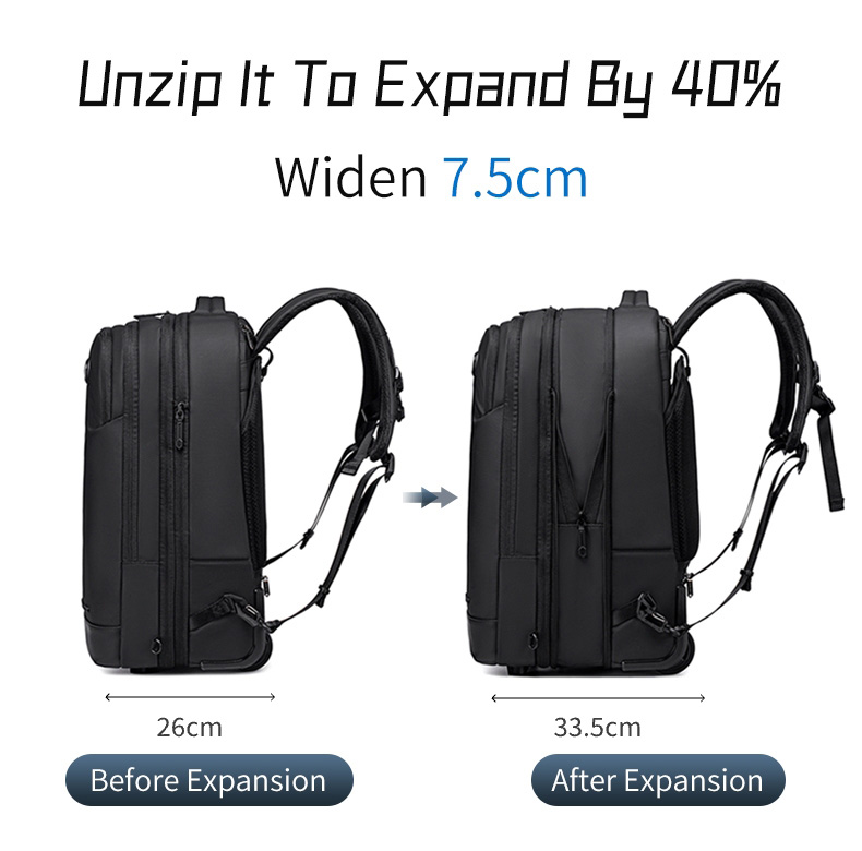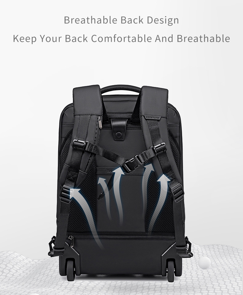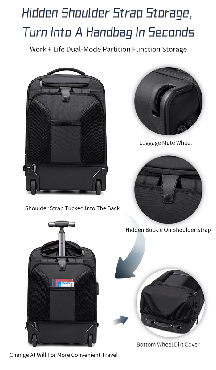 Διαθέτει τροχούς και πτυσσόμενη τηλεσκοπική λαβή που μπορεί να συμπτυχθεί πλήρως μέσα στην τσάντα, προσφέροντας ευκολία στη μεταφορά.