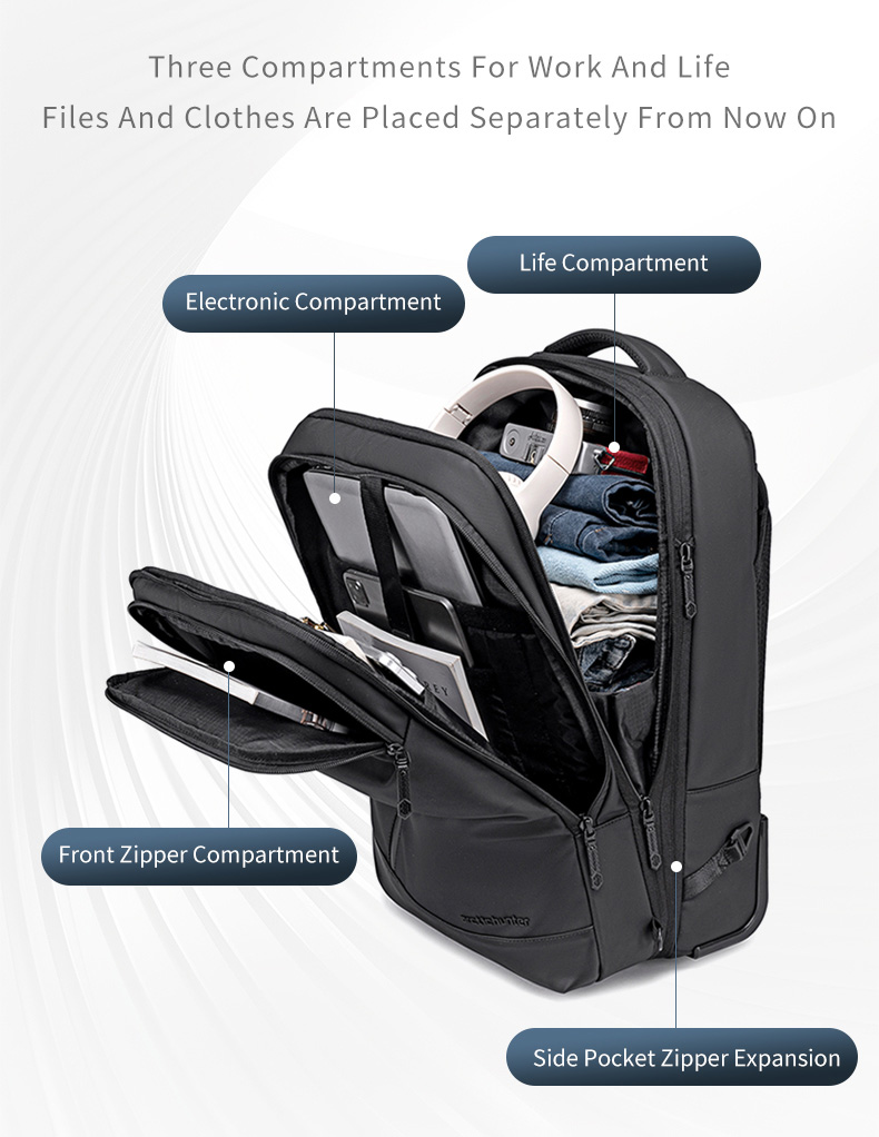 ARCTIC HUNTER τσάντα ταξιδίου LG00861 με θήκη laptop 15.6″, τροχήλατη, 42L/54L, μαύρη