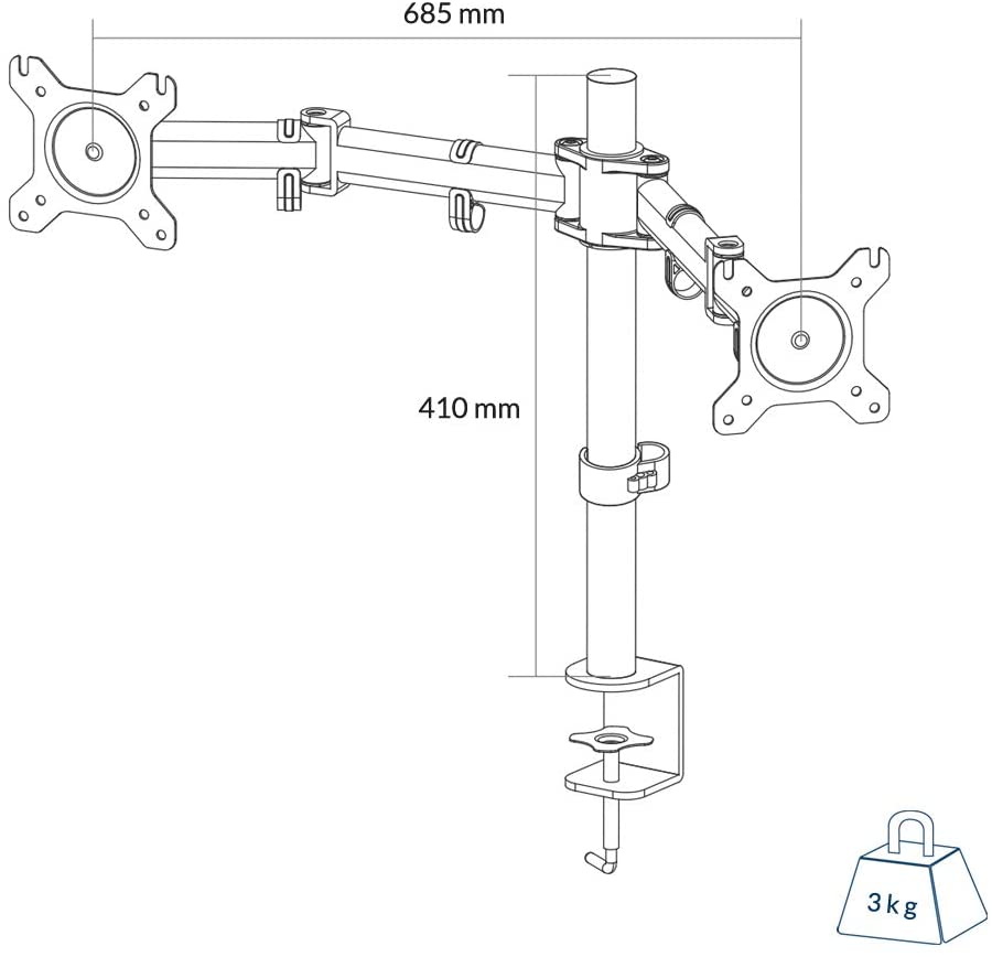 Ο βραχίονας των οθονών σας, μπορεί να τοποθετηθεί στις περισσότερες επιφάνειες με τον στιβαρό και ρυθμιζόμενο σφιγκτήρα που προσαρμόζεται στο άκρο του γραφείου σας σε διάφορα πάχη.
