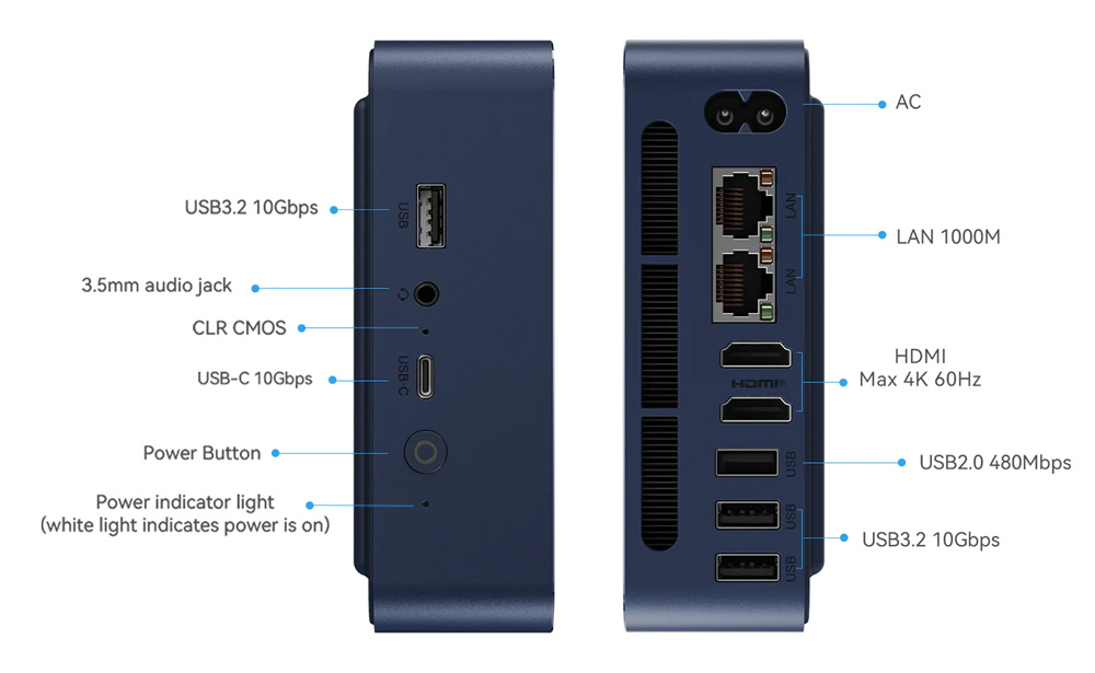 -Δίκτυο: 2.4G & 5G Dual-band WiFi 6 (Intel AX101), Dual Gigabit Ethernet 1000Mbps