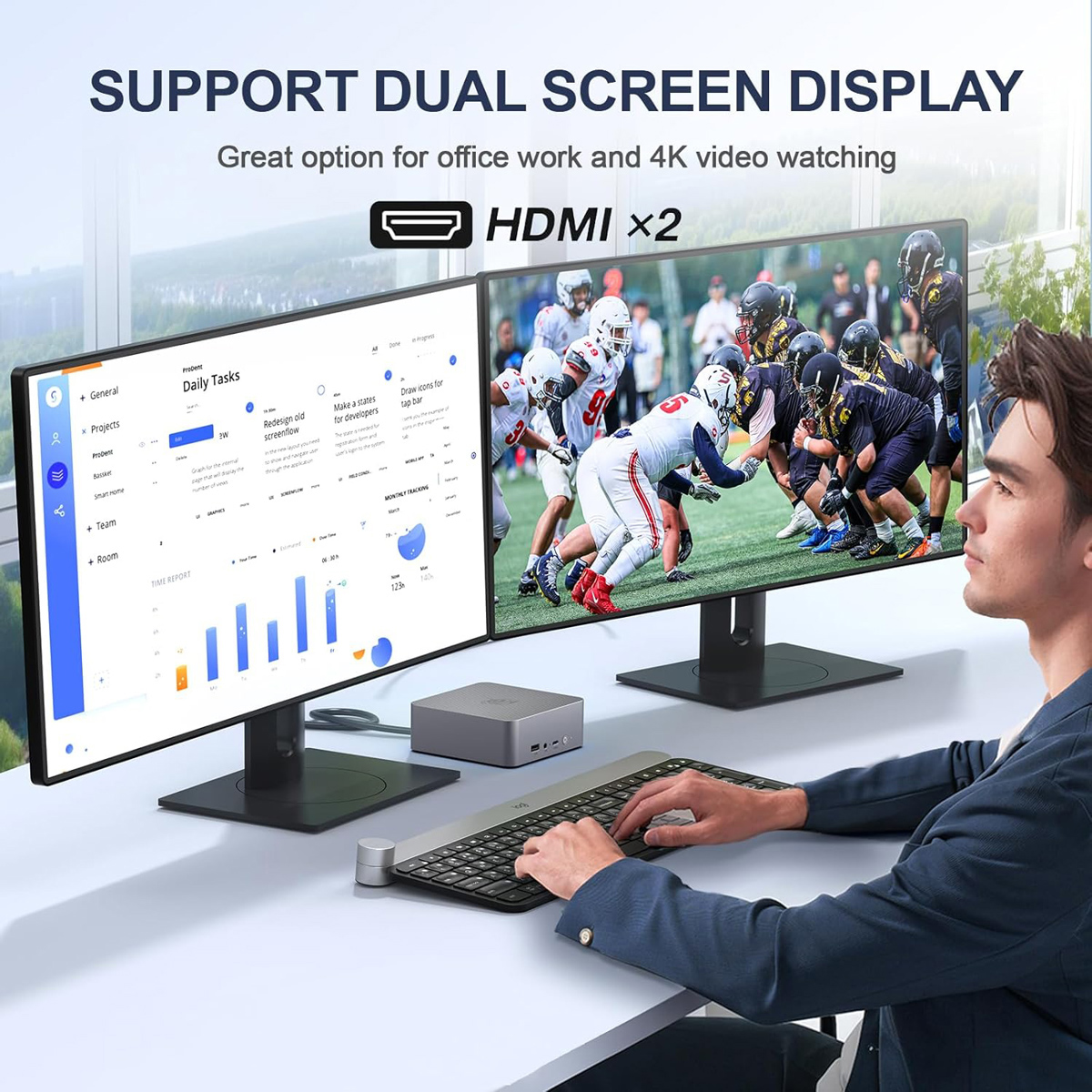 -Έξοδος βίντεο: 2x HDMI (Dual Display)