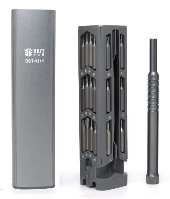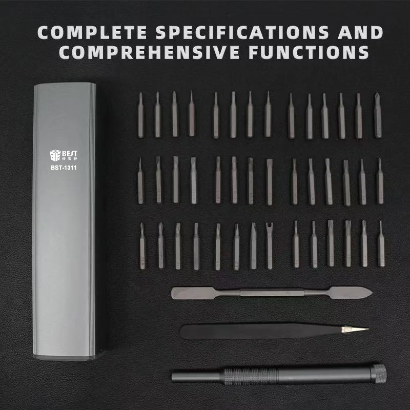 Σετ της BEST το οποίο αποτελείται από 1 κατσαβίδι, ίσια τσιμπίδα, εργαλείο ανοίγματος με διπλή κεφαλή και 42 διαφορετικές μύτες κατσαβιδιού.