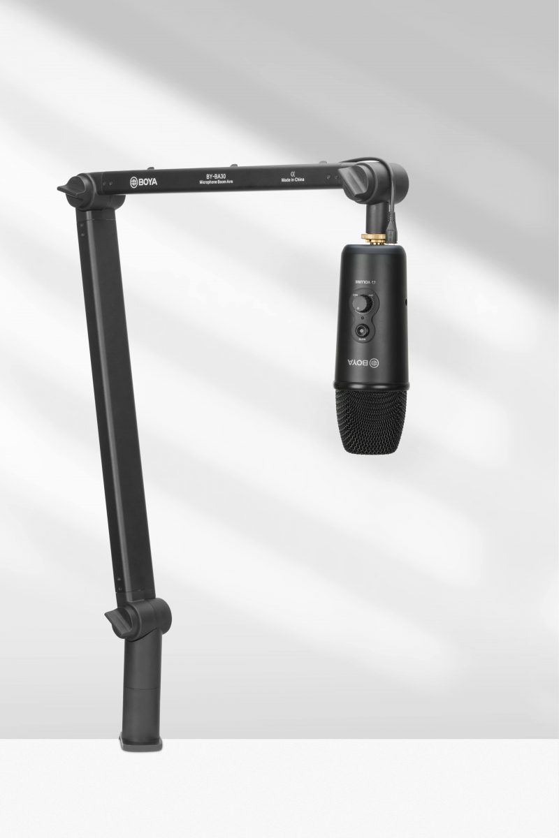 Το BOYA BY-BA30 είναι το premium microphone boom arm της BOYA. Ένας βραχίονας ανάρτησης μικροφώνου που προσφέρει τεράστιες βελτιώσεις σε σχέση με το οικονομικό BY-BA20. Αρχικά φτάνει παντού. Φτάνει τα 43 εκατοστά σε μήκος και τα 66 σε ύψος. Δένεται σταθερά πάνω σε γραφείο μέσω το c-clamp mount. Διαθέτει κρυφό κανάλι για cable management και είναι ιδανικό για επαγγελματικό podcasting, streaming και ηχογράφηση/ραδιόφωνο. Διαθέτει αντάπτορα και από 5/8″ σε 3/8″ βίδα και σηκώνει μικρόφωνα μέχρι και 1,364 κιλά.