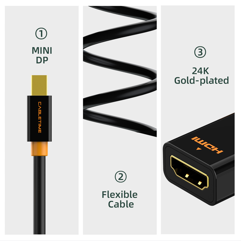 CABLETIME αντάπτορας mini DisplayPort σε HDMI CT-AV589-02G4K, 4K/30Hz, μαύρος