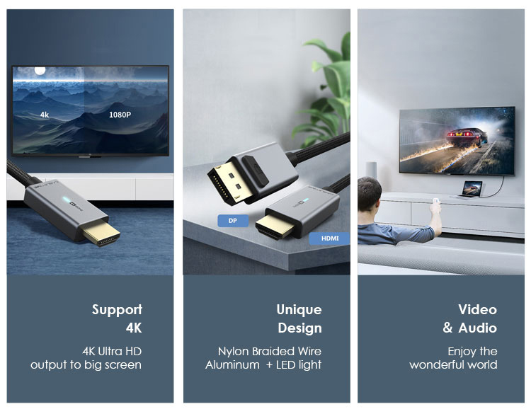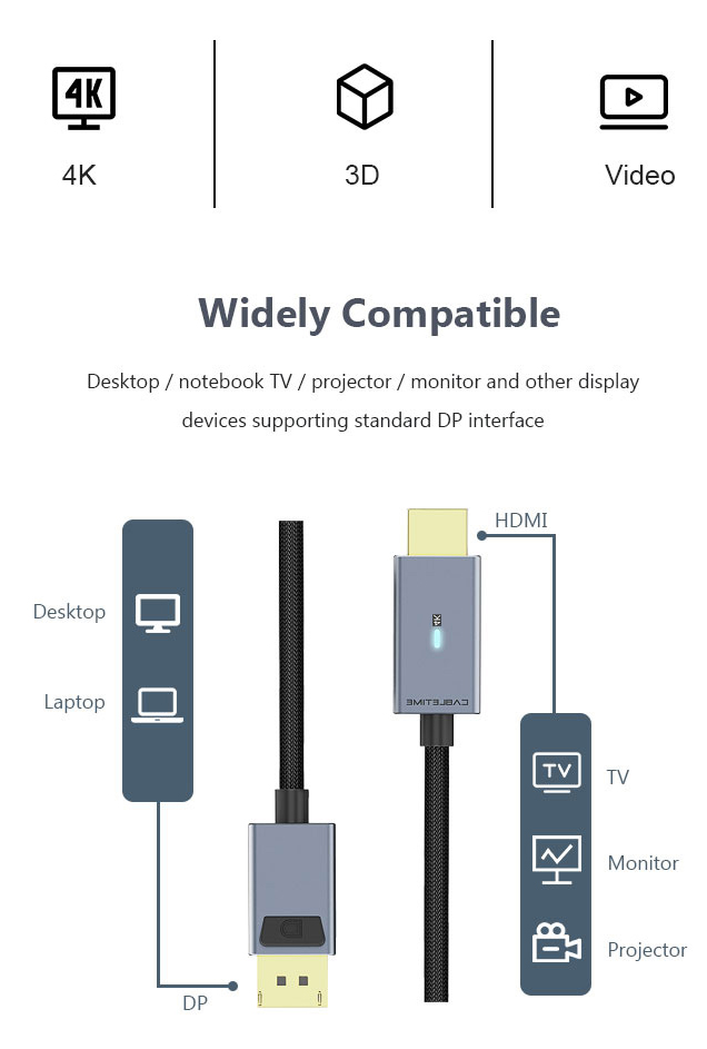 CABLETIME καλώδιο DisplayPort σε HDMI CT-P02G4K, 4K, 1.8m, μαύρο
