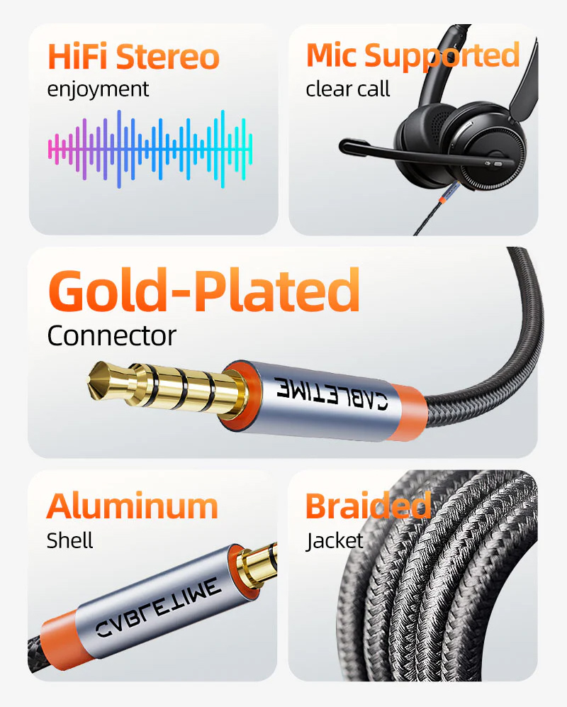 Καλώδιο ήχου της Cabletime ιδανικό για την σύνδεση συσκευών με θύρα 3.5mm όπως smartphones, desktops και laptops με συσκευές ήχου με θύρα 3.5mm όπως ηχεία, ακουστικά κ.α.