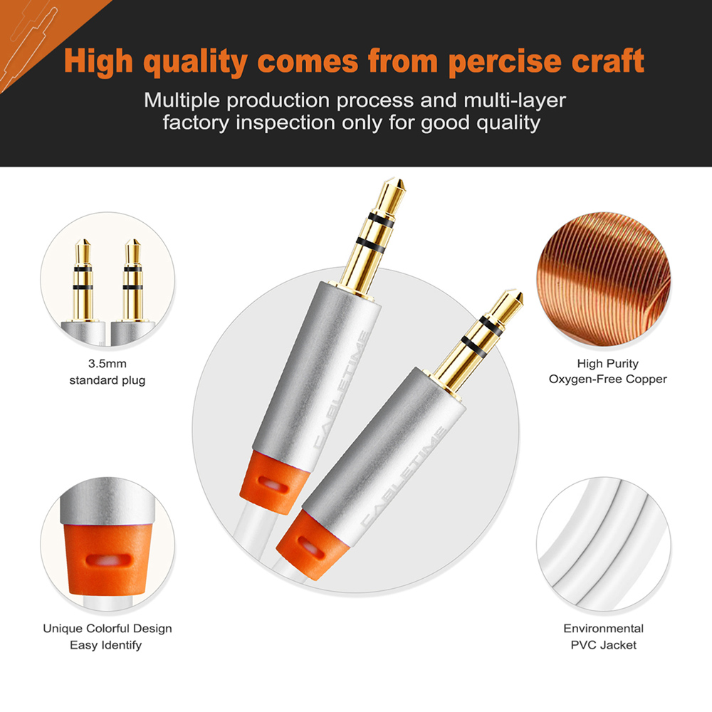 Καλώδιο ήχου της Cabletime ιδανικό για την σύνδεση συσκευών με θύρα 3.5mm όπως smartphones, desktops και laptops με συσκευές ήχου με θύρα 3.5mm όπως ηχεία, ακουστικά κ.α.