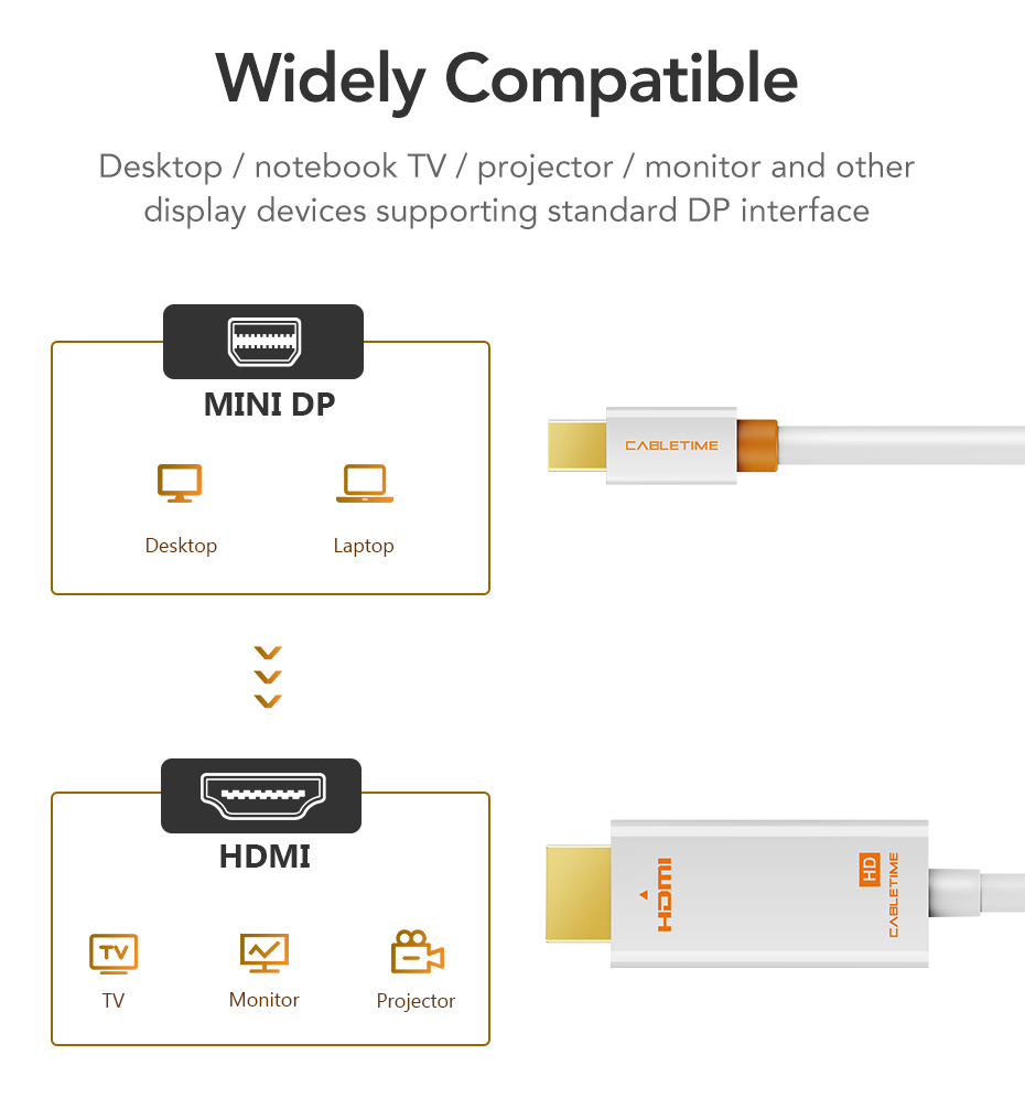 CABLETIME καλώδιο mini DisplayPort σε HDMI CT-AV588-03G, 1080p/60Hz, 1m, λευκό