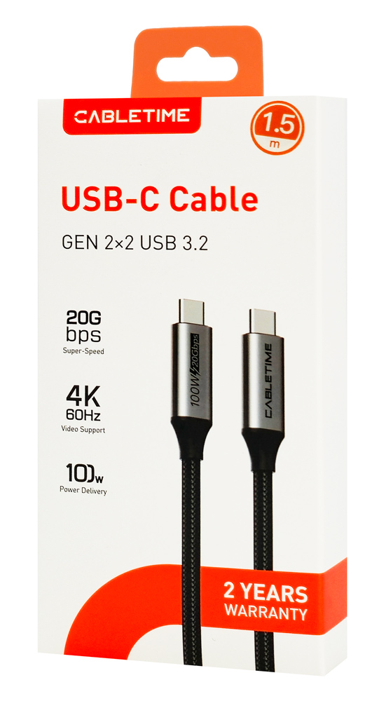 CABLETIME καλώδιο USB-C CT-CMCM2, USB 3.1, 100W, 20Gbps, 4K, 1.5m, μαύρο