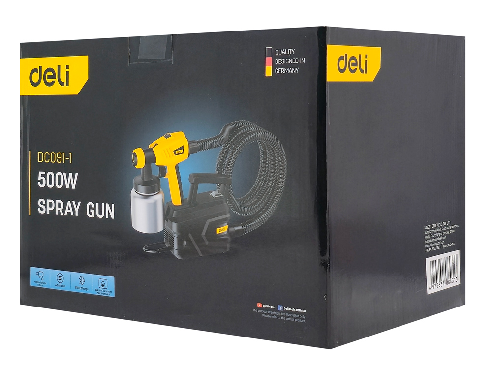 Ηλεκτρικό πιστόλι βαφής της Deli ιδανικό για για γρήγορη και ομοιόμορφη βαφή σε διάφορες επιφάνειες. Διαθέτει πολλαπλά μοτίβα ψεκασμού, ρυθμιζόμενη ροή και αντιολισθητική λαβή για άνετη και εύκολη χρήση.