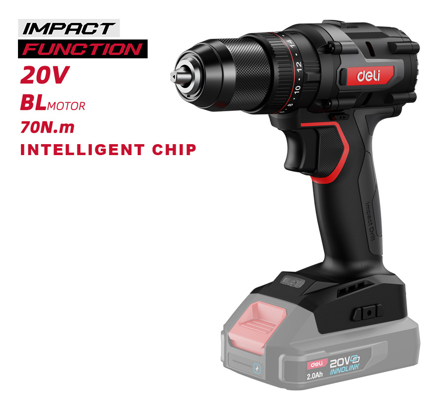DELI κρουστικό δραπανοκατσάβιδο μπαταρίας DE-CZ20-1, Brushless, 20V, 70N.m