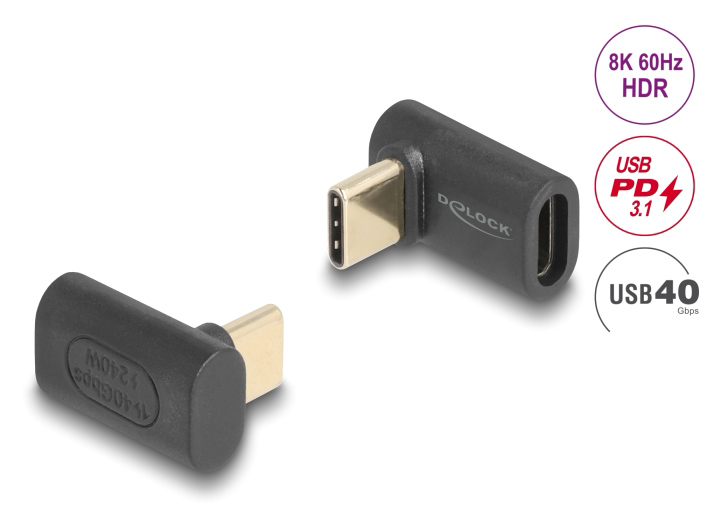 DELOCK αντάπτορας USB-C 60246, αρσενικό σε θηλυκό, 240W, 40Gbps, μαύρος