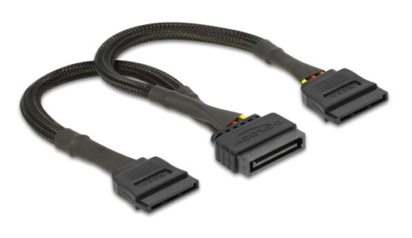 DELOCK καλώδιο SATA 15pin σε 2x SATA 15pin 60135, 0.25m, μαύρο