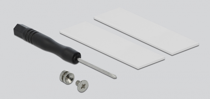 This adapter by Delock enables the connection of an M.2 SSD in 2280, 2260, 2242 and 2230 format. The data transmission occurs directly via the PCI Express slot.