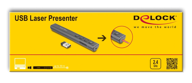 DELOCK τηλεχειριστήριο παρουσιάσεων 64250 με laser & πλήκτρα, 30m, γκρι