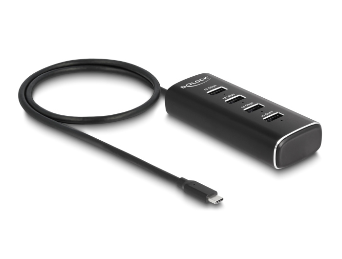 Αυτό το hub της Delock μπορεί να συνδεθεί με το laptop ή το desktop σας μέσω θύρας USB-C και να επεκτείνει τις θύρες του με 4x USB θύρες. Διαφορετικές συσκευές USB, όπως docking stations, card readers, εξωτερικοί HDD/SSD κ.λπ. μπορούν να συνδεθούν μέσω του hub. Κάθε θύρα μπορεί να ενεργοποιηθεί ή να απενεργοποιηθεί μεμονωμένα με τη χρήση των διακοπτών.
