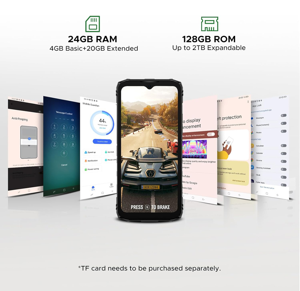 Με 4GB (+20GB virtual) RAM και 128GB ROM για να αποθηκεύετε τα αγαπημένα σας αρχεία, φωτογραφίες και βίντεο. Επιπλέον, προσφέρει την δυνατότητα να επεκτείνετε τον χώρο αποθήκευσης του smartphone με κάρτα micro SD.