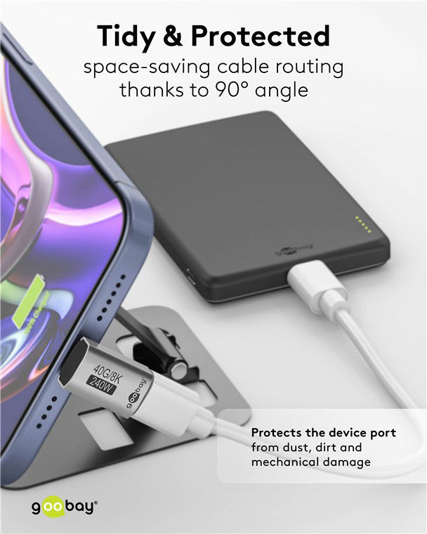 GOOBAY αντάπτορας USB-C 74442, γωνιακός 90°, USB4, 240W, 40Gbps, 8K, γκρι