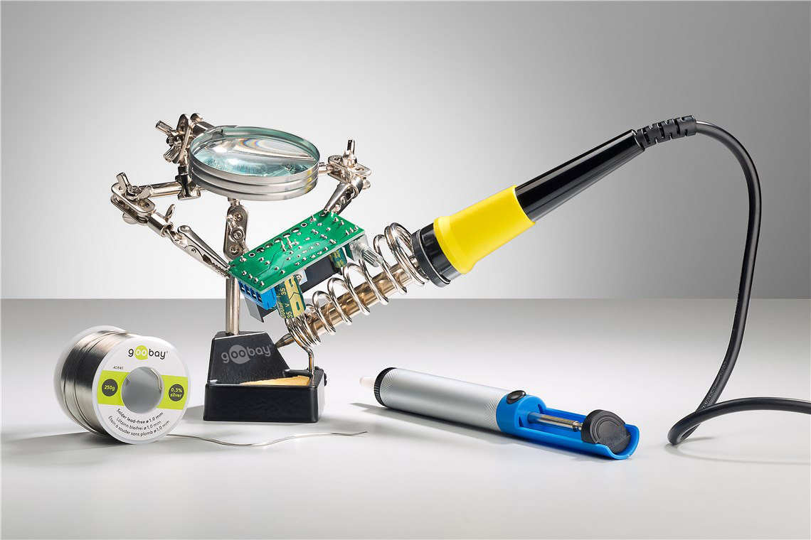 Βάση της Goobay για την στερέωση ηλεκτρονικών εξαρτημάτων όπως πλακέτες, κατάλληλη για εργασίες συγκόλλησης.