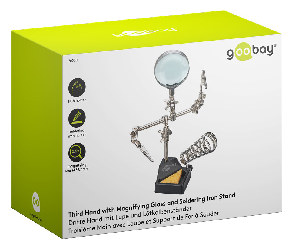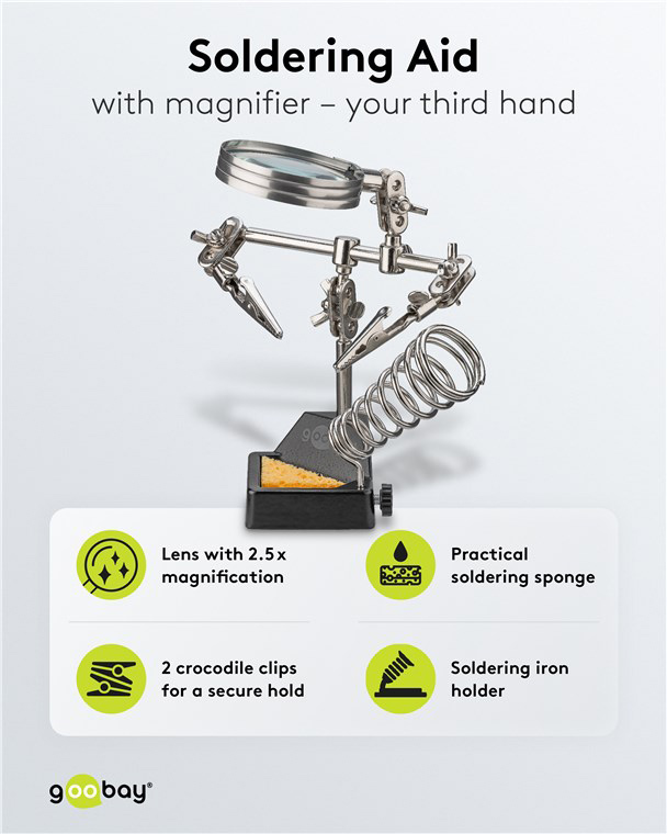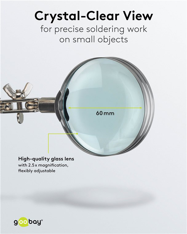 GOOBAY βάση στήριξης πλακέτας 76560 με μεγεθυντικό φακό & θέση για κολλητήρι, 2x βραχίονες, μαύρη