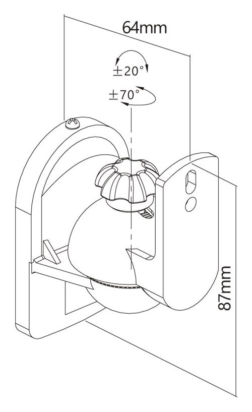 -Εύκολη περιστροφή 20° πάνω-κάτω και 70° αριστερά-δεξιά για την κατεύθυνση του ήχου, χωρίς εργαλεία