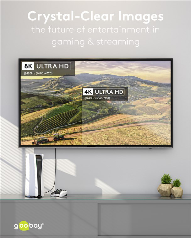 GOOBAY καλώδιο DisplayPort 77443, 8K/120Hz, 40 Gbps, 2m, μαύρο