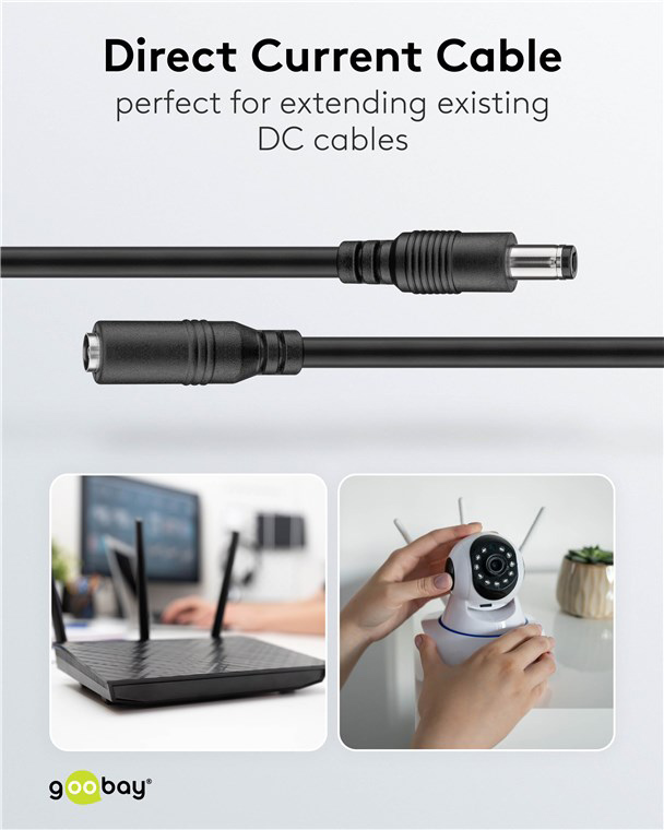 GOOBAY καλώδιο προέκτασης τροφοδοσίας 71401, 5.5×2.5mm, 3m, μαύρο
