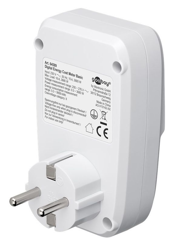 Μετρητής της Goobay για τη μέτρηση της κατανάλωσης ρεύματος των συνδεδεμένων οικιακών ηλεκτρικών συσκευών. Ενσωματώνει ευανάγνωστη οθόνη που σας επιτρέπει να παρακολουθείτε την κατανάλωση του ρεύματος αλλά και το κόστος σε ευρώ/kWh. Η ανάγνωση των δεδομένων μπορεί να γίνει σε πραγματικό χρόνο αλλά και μακροπρόθεσμα εφόσον παραμείνει συνδεδεμένη στην πρίζα η ηλεκτρική συσκευή.