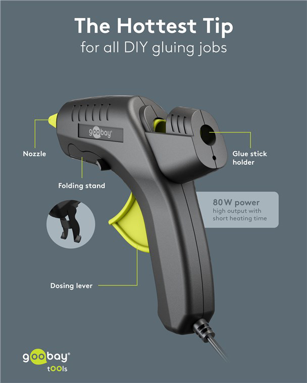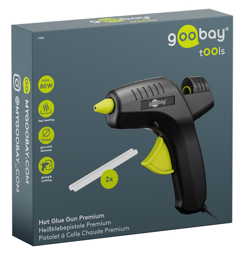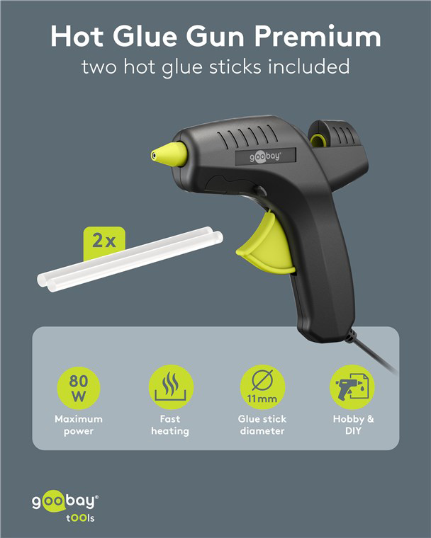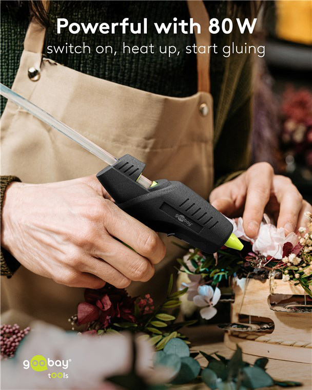 GOOBAY πιστόλι θερμοκόλλησης σιλικόνης 77824 με 2x ράβδους σιλικόνης 11mm, 80W, μαύρο