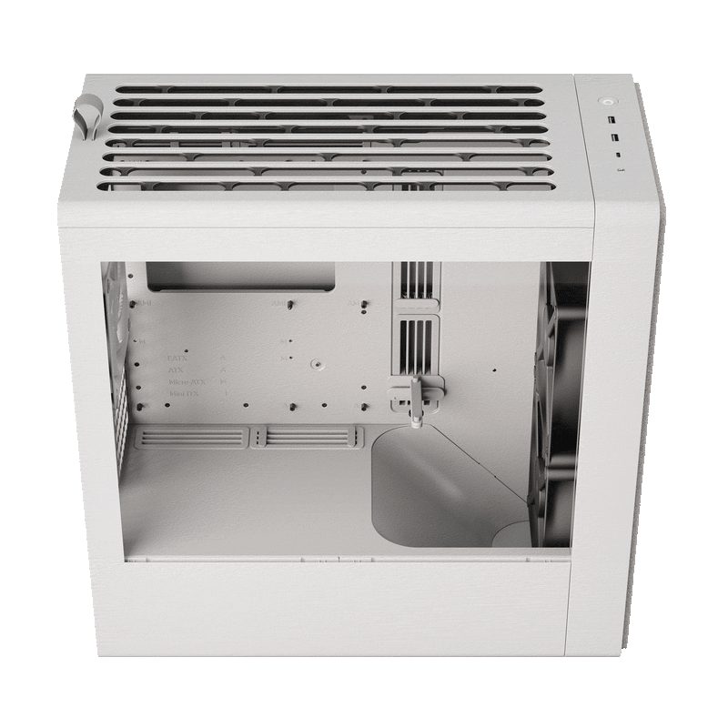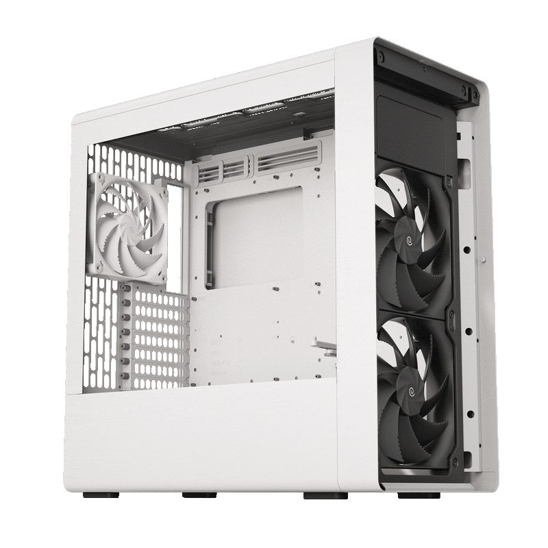 Περιλαμβάνονται δύο ανεμιστήρες 180 mm και ένας ανεμιστήρας 140 mm, που παρέχουν ροή αέρα 160 CFM σε χαμηλές στροφές με μειωμένο θόρυβο για βέλτιστη ψύξη της CPU και της GPU υπό βαριά φορτία. Υποστηρίζει έως και τέσσερις ανεμιστήρες 180 mm και διπλά ψυγεία 360 mm/420 mm.