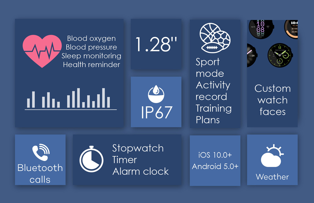 Εξοπλίζεται με εντυπωσιακή έγχρωμη οθόνη αφής 1.28″ και υποστηρίζει πραγματοποίηση και απάντηση κλήσεων απευθείας από το smartwatch.