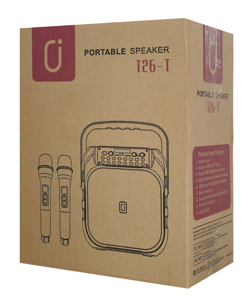 JYX φορητό ηχείο T26-T με 2x μικρόφωνα, 20W, 4000mah, LED, μαύρο