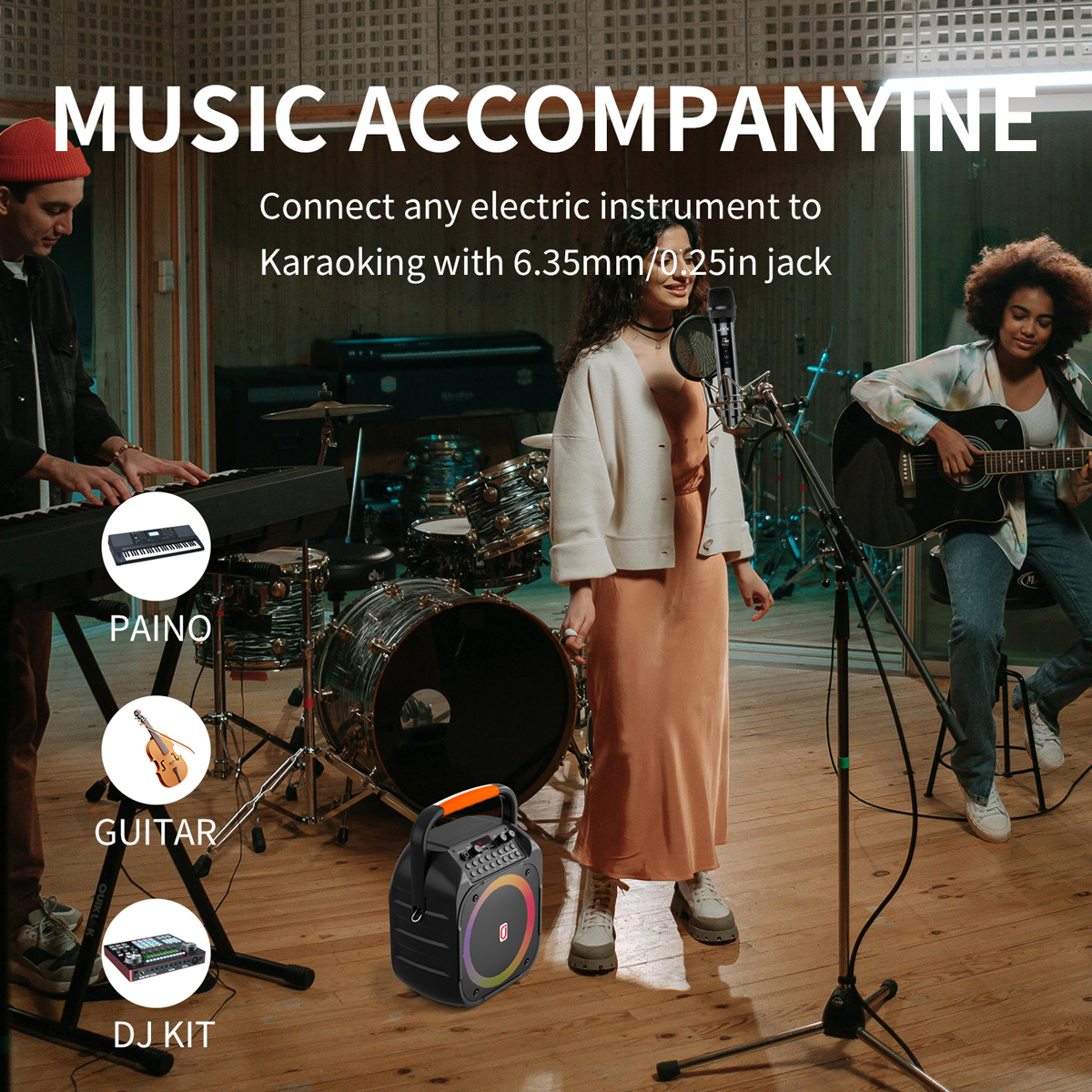 Μέσω της θύρας 6.35mm σας δίνει την δυνατότητα σύνδεσης με μικρόφωνο ή ηλεκτρικά μουσικά όργανα όπως κιθάρα, πλήκτρα κ.α.