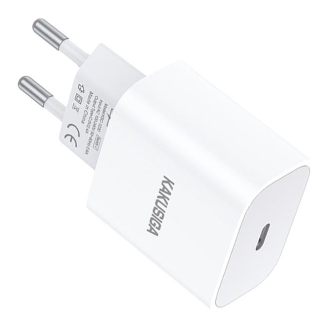 Υψηλής απόδοσης φορτιστής τοίχου της KAKUSIGA, κατασκευασμένος από ανθεκτικό υλικό και συμβατός με συσκευές που φορτίζουν μέσω θύρας USB-C.