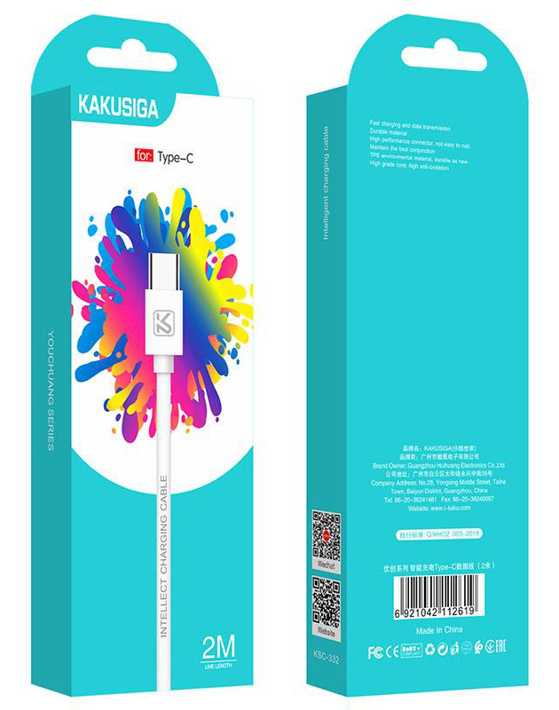 KAKUSIGA καλώδιο USB-C σε USB KSC-332, 2.4A, 480Mbps, 2m, λευκό