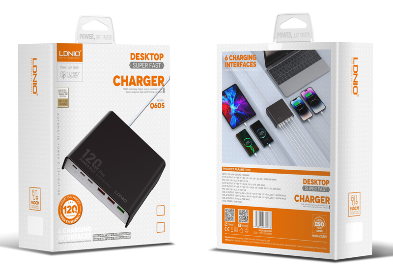 LDNIO σταθμός φόρτισης Q605, 3x USB-C & 3x USB, 120W, PD/QC, μαύρος