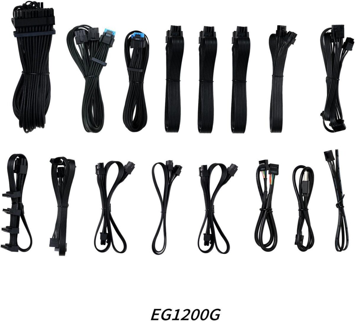 Το τροφοδοτικό είναι εξοπλισμένο με όλα τα καλώδια που διαθέτουν πλεγμένη υφή. Τα καλώδια 20+4pin, CPU, PCIe 6+2pin και 12V-2×6 είναι σχεδιασμένα με εύκολα ρυθμιζόμενες combs καλωδίων, εξασφαλίζοντας πολύ καθαρές καμπύλες και διαδρομές καλωδίων για μια αισθητικά ευχάριστη και οργανωμένη κατασκευή διπλού θαλάμου.