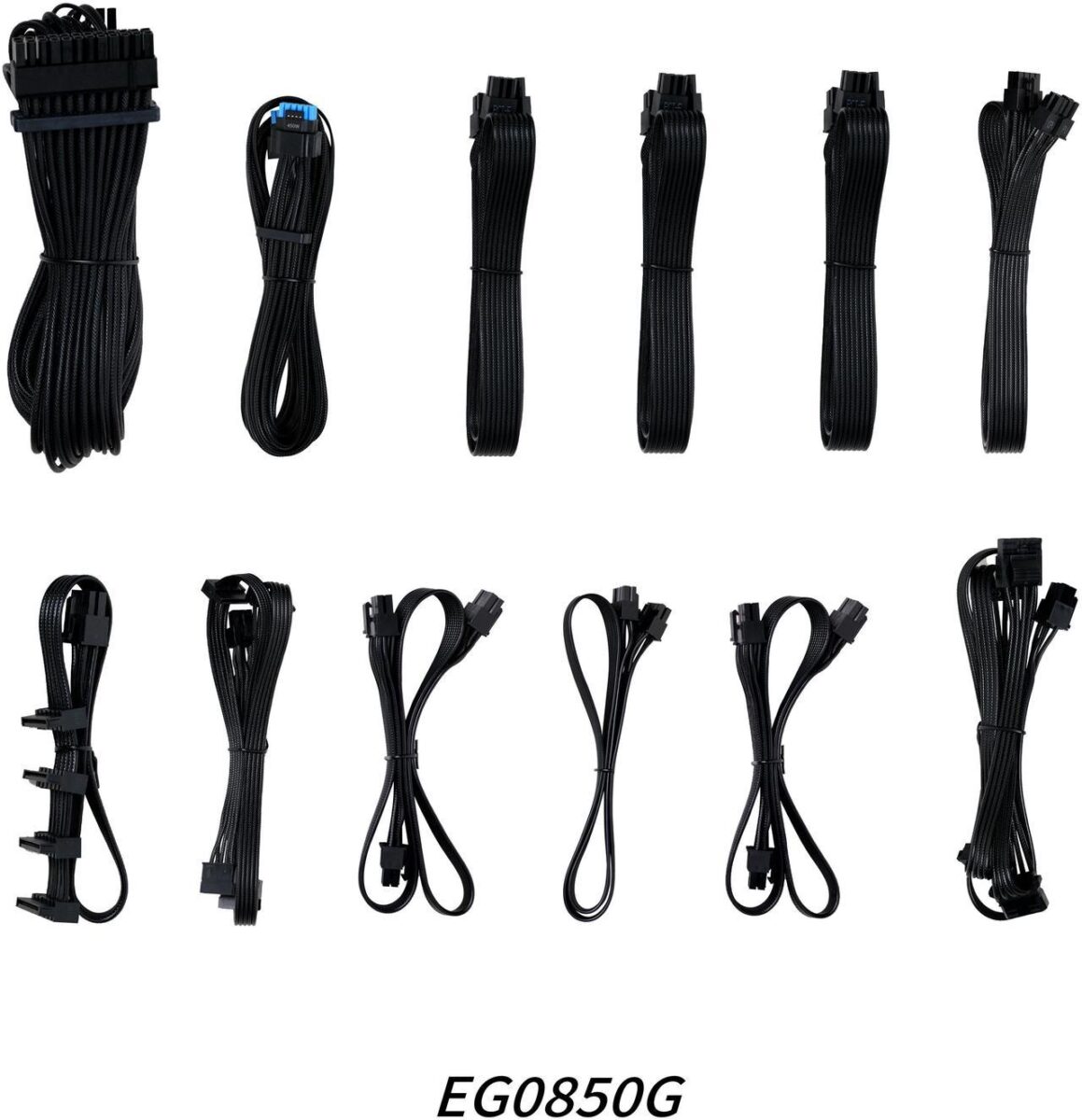 Το τροφοδοτικό είναι εξοπλισμένο με όλα τα καλώδια που διαθέτουν πλεγμένη υφή. Τα καλώδια 20+4pin, CPU, PCIe 6+2pin και 12V-2×6 είναι σχεδιασμένα με εύκολα ρυθμιζόμενες combs καλωδίων, εξασφαλίζοντας πολύ καθαρές καμπύλες και διαδρομές καλωδίων για μια αισθητικά ευχάριστη και οργανωμένη κατασκευή διπλού θαλάμου.