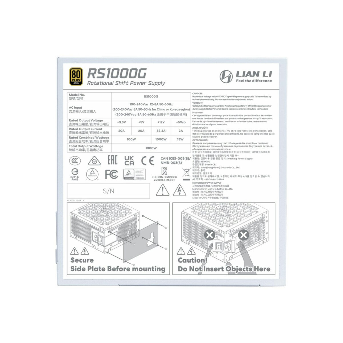 Lian Li RS1000G White – 1000 Watt 80+ Gold PSU – 12V-2×6 Colored Cable – RS Hub – Fully Modular