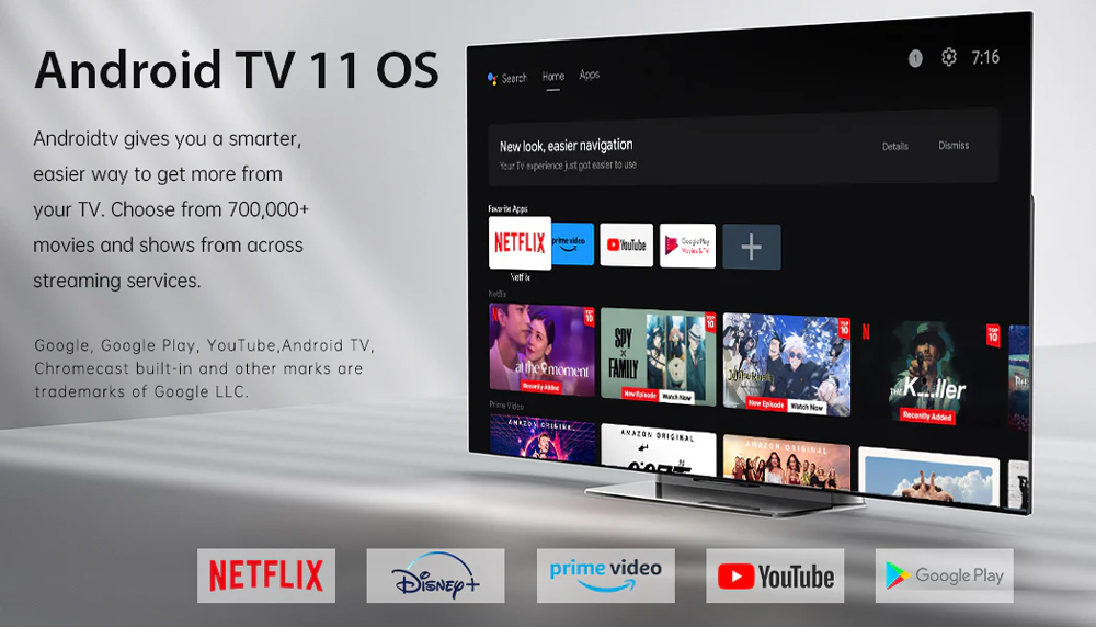-Εφαρμογές: Netflix, Prime Video, YouTube, Disney+, Google Play (More apps on Google Play Store)