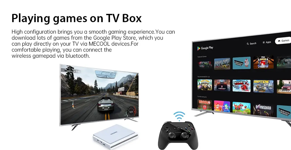 Η ενσωματωμένη μνήμη 4GB RAM και 32GB ROM παρέχει αρκετό χώρο για να εγκαταστήσετε παιχνίδια και ταινίες. Εάν παρόλα αυτά η ROM των 32GB δεν είναι αρκετή για εσάς, υποστηρίζει σύνδεση με σκληρό δίσκο, συσκευή USB ή κάρτα micro SD για να επεκτείνετε τον χώρο αποθήκευσης του TV box.