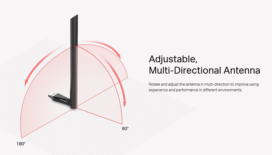 -Κεραία υψηλής απόδοσης: Μια κεραία υψηλής απόδοσης 5dBi βελτιώνει σημαντικά την ισχύ σήματος λήψης και μετάδοσης του προσαρμογέα USB