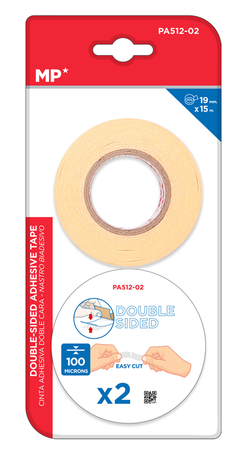 MP κολλητική ταινία διπλής όψεως PA512-02, 19mm, 15m, μπεζ, 2τμχ