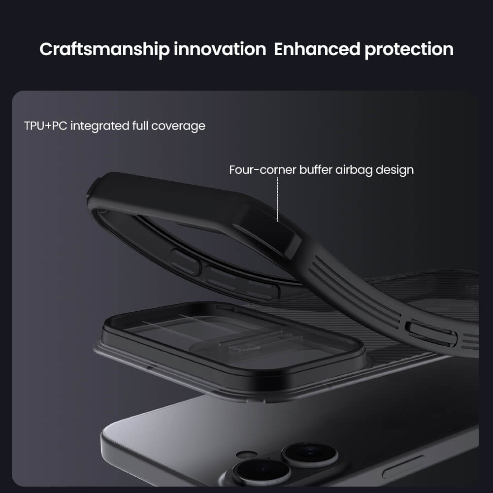 Η θήκη της σειράς CamShield Pro της Nillkin χαρακτηρίζεται από την ενισχυμένη προστασία που προσφέρει, το σκληρό υλικό κατασκευής της με την ανάγλυφη επιφάνεια, αλλά και την έξτρα προστασία των καμερών και της ιδιωτικότητας σας, χάρη στο συρόμενο καπάκι της.