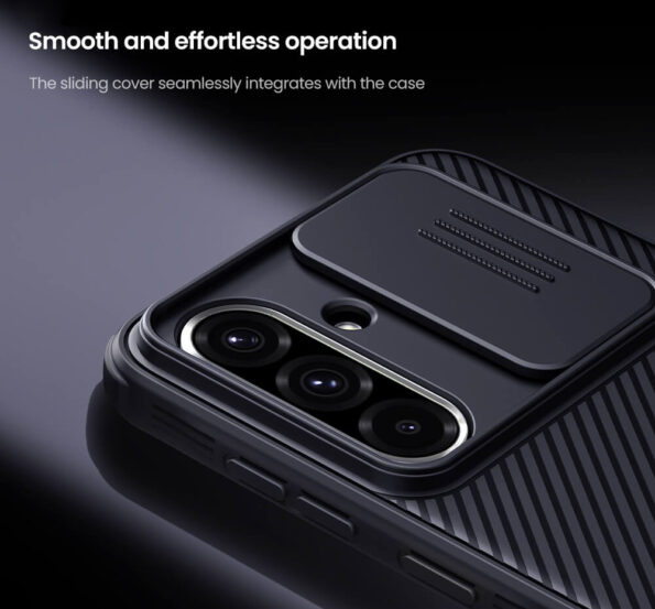 Η θήκη της σειράς CamShield Pro της Nillkin χαρακτηρίζεται από την ενισχυμένη προστασία που προσφέρει, το σκληρό υλικό κατασκευής της με την ανάγλυφη επιφάνεια, αλλά και την έξτρα προστασία των καμερών και της ιδιωτικότητας σας, χάρη στο συρόμενο καπάκι της.