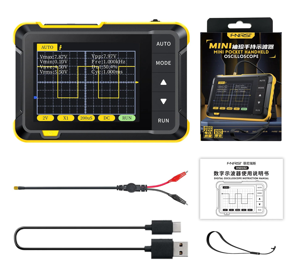 FNIRSI παλμογράφος χειρός DSO152, 1 κανάλι, 200KHz, επαναφορτιζόμενος
