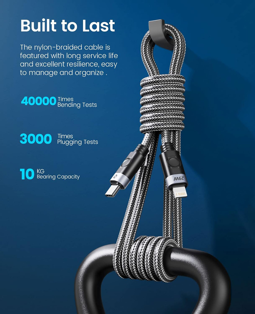 Καλώδιο φόρτισης και μεταφοράς δεδομένων Lightning σε USB-C της ORICO. Υποστηρίζει φόρτιση με απόδοση έως 29W και μεταφορά δεδομένων με ταχύτητα έως 480Mbps.