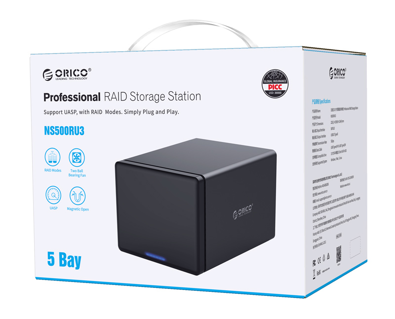 ORICO NAS για 5x 3.5″ HDD NS500RU3 USB 3.0, 5Gbps, έως 80TB, μαύρη