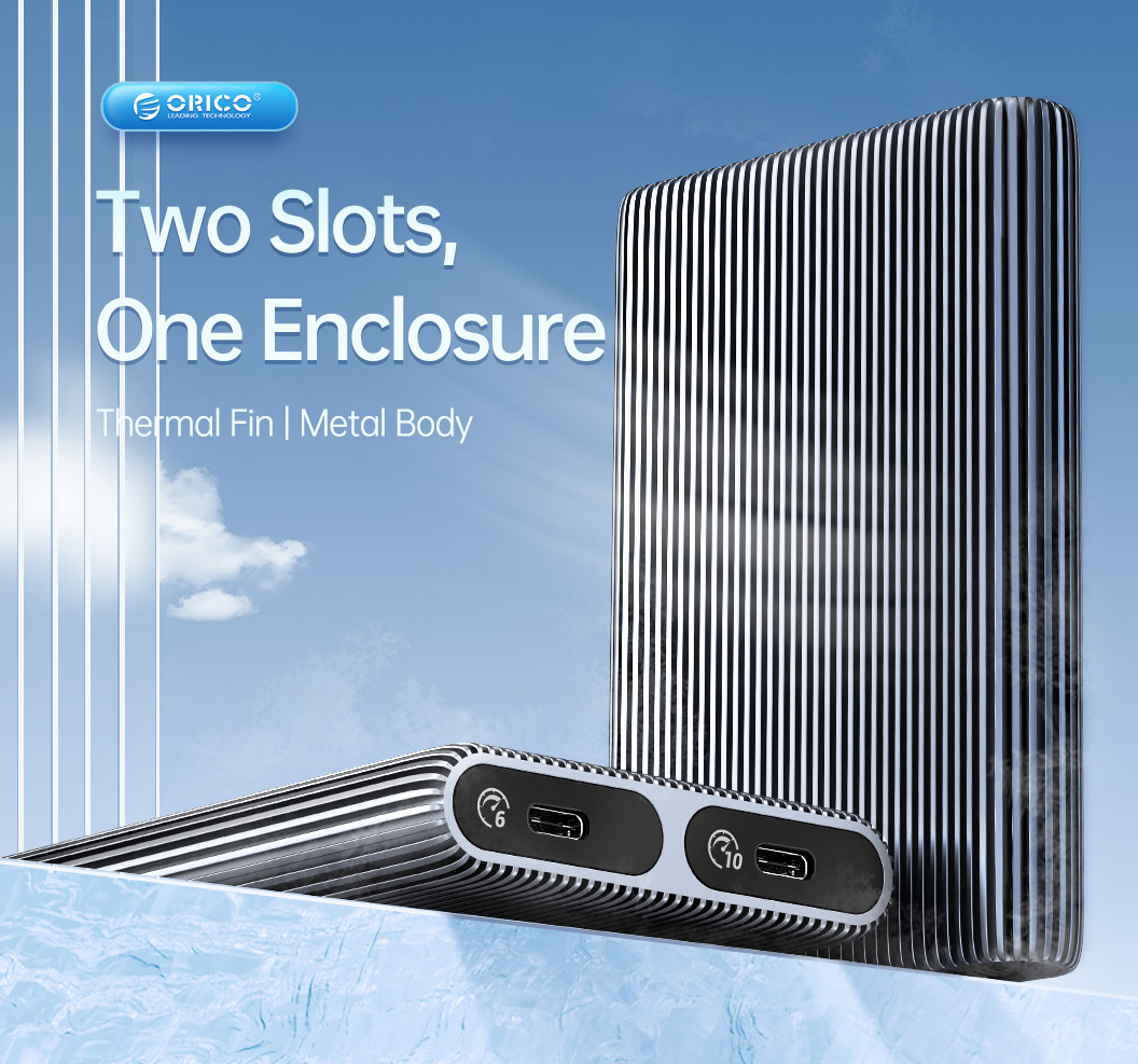 Η θήκη της ORICO επιτρέπει την σύνδεση 2x M.2 NVME SSD με έναν επιτραπέζιο ή φορητό υπολογιστή μέσω θύρας USB-C ή USB.