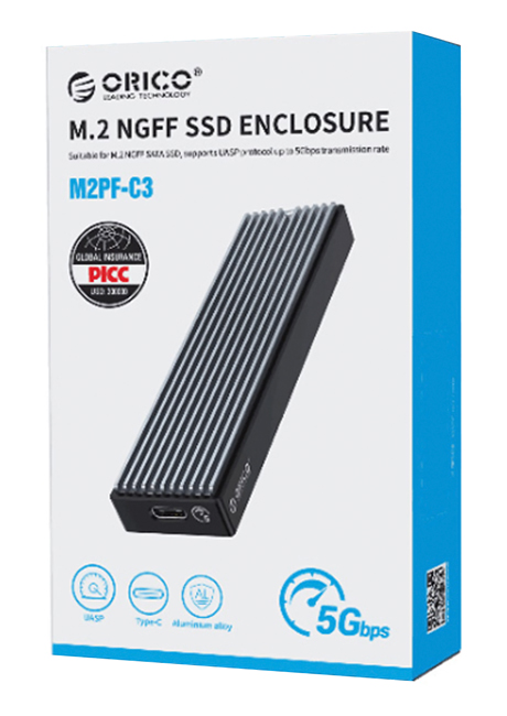 ORICO θήκη για Μ.2 SATA SSD M2PF-C3, 5Gbps, έως 2TB, μαύρο